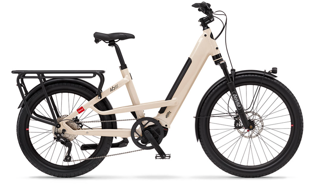 Swift, smooth and strong, the athletic 46er makes it look easy—hauling a load or just hauling down the road. Front suspension makes short work of uneven terrain, while an oversized rear rack expands your cargo options to give you unequaled capability in a standard-sized bike.