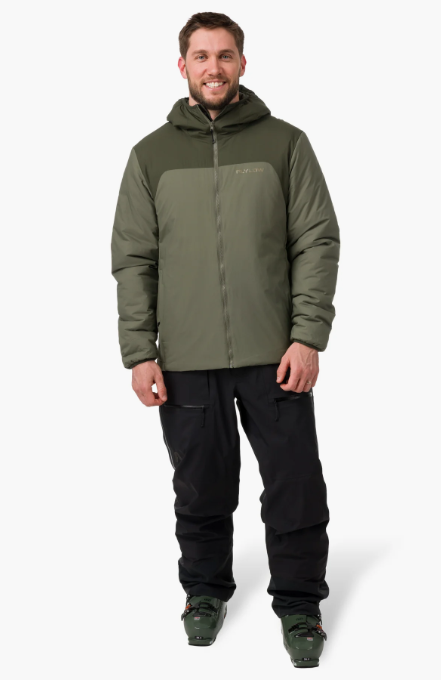 We designed the Crowe Jacket as an insulating, hooded midlayer you can move in easily. It’s warm but not bulky or sweltering. The tightly-woven exterior Pertex® Quantum Air fabric is soft and light and is designed to improve the efficiency of the insulation. The Crowe’s 80-gram Greenloft recycled insulation lets heat and moisture escape like smoke out of a chimney. It’s coated in a PFAS-free Durable Water Repellent, so you can wear the Crowe Jacket on its own, but it also layers well under a shell for cold days at the resort. It’s light, packable, and technical enough to be your everyday driver.