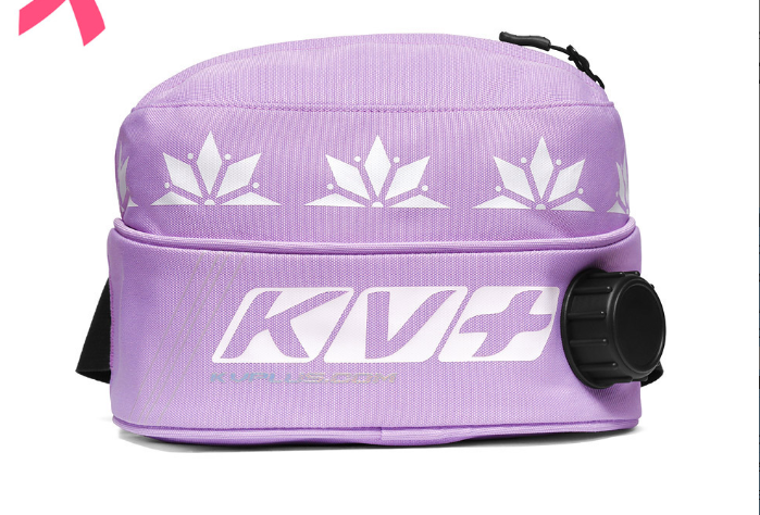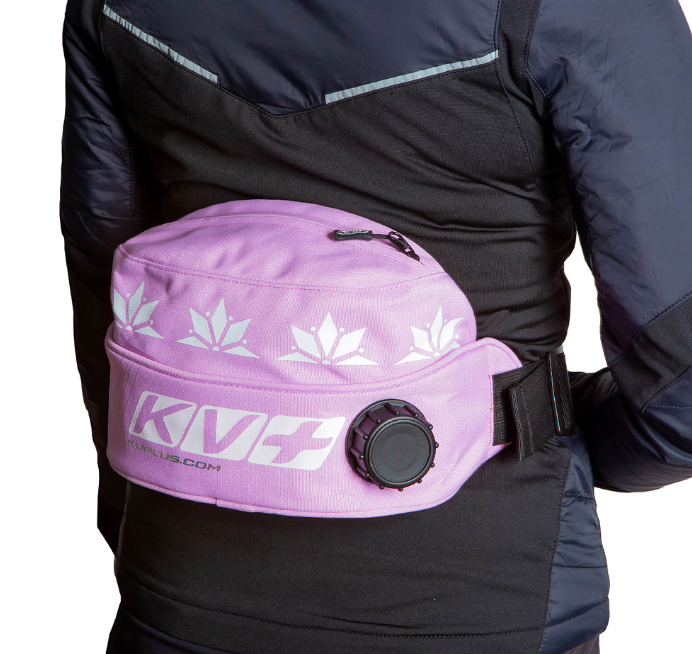 The KV+ Premium drink belt in lilac features a wide, adjustable waist strap and an extra-large storage pocket on top, spacious enough to hold waxes, keys, an energy bar, or a phone. When not in use, the pocket can be compressed flat.