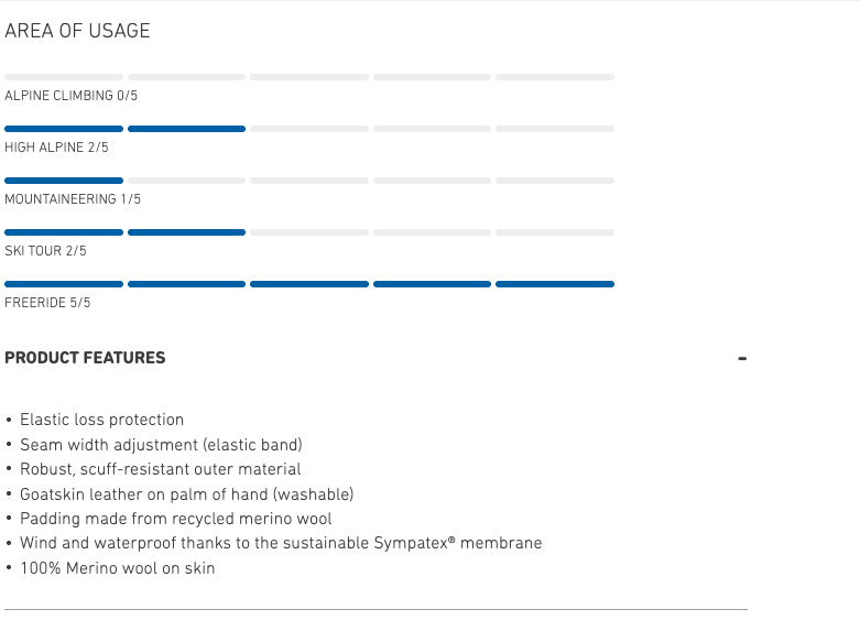 The MERINO MOUNTAIN GLOVES for men are technically sophisticated, reliable companions for challenging mountain adventures in winter.