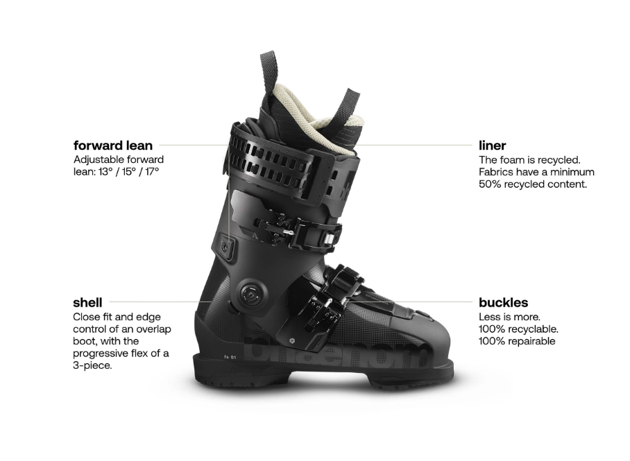 The fs 01 120 is the all-mountain freeski boot designed to achieve flex perfection, power transmission and shock absorption.